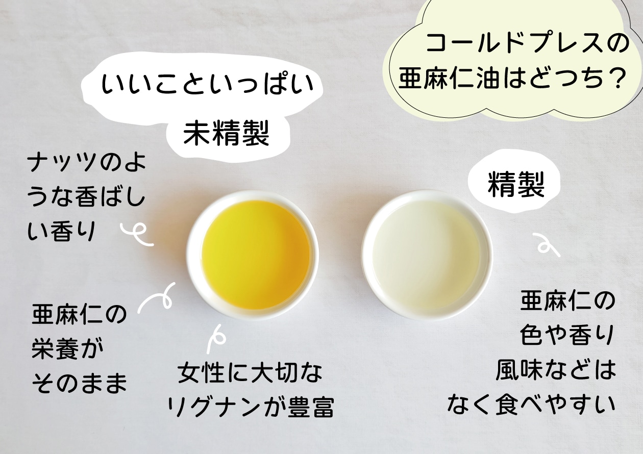 コールドプレス製法の亜麻仁油でも精製されているものもあります。未精製のものは数少ないのが現状です。