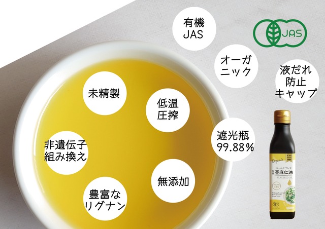 低温圧搾(コールドプレス)で搾った有機亜麻仁油(あまに油)