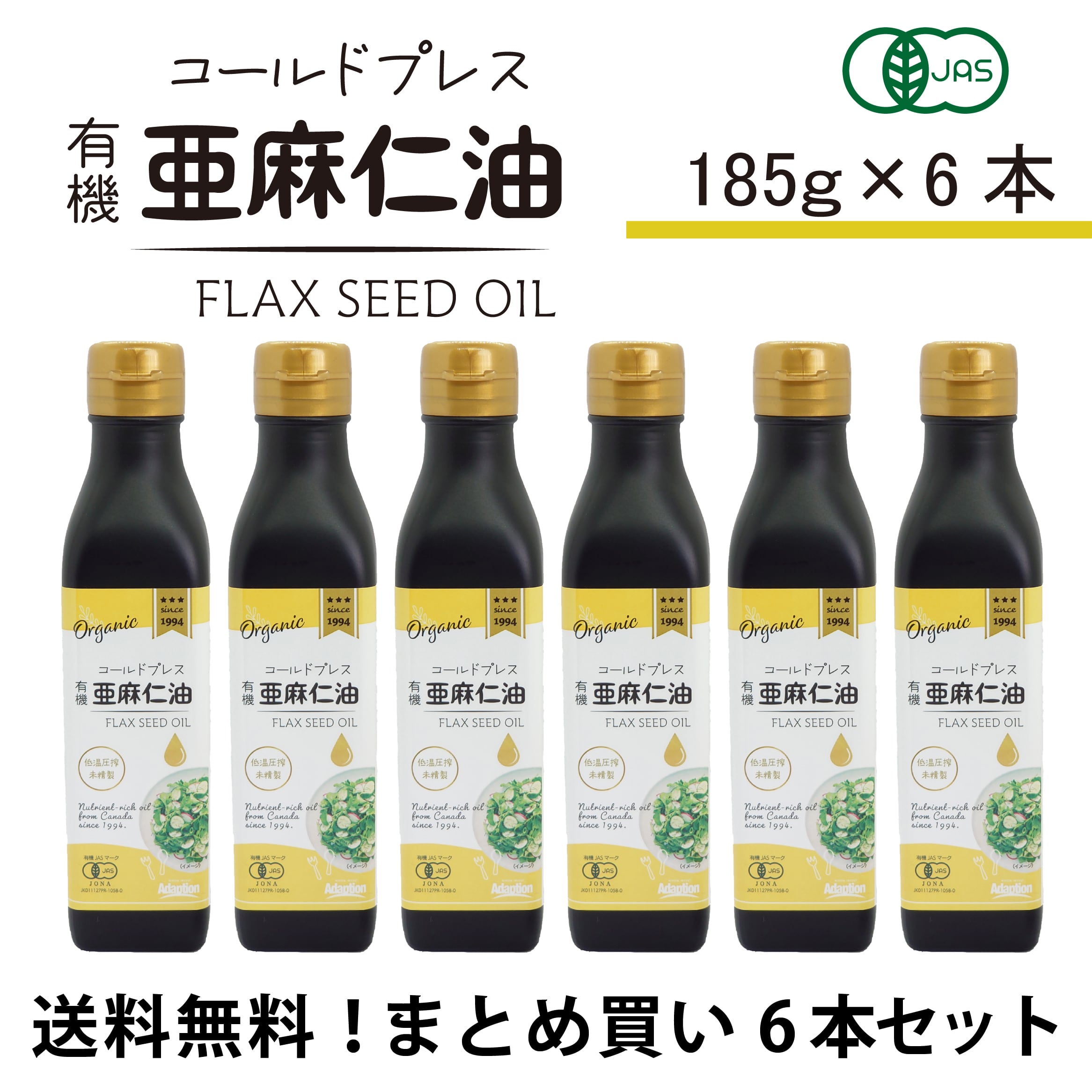 【6本セット・185g×6】コールドプレス有機亜麻仁油|オメガ3豊富|無添加・オーガニック・未精製|送料無料・ギフト・定期利用にもおすすめ|税込・送料無料