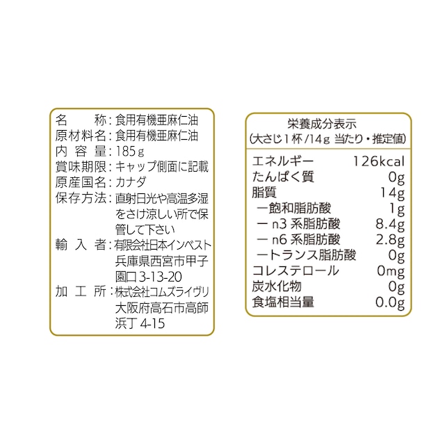 原材料:有機食用亜麻仁油(カナダ製造)