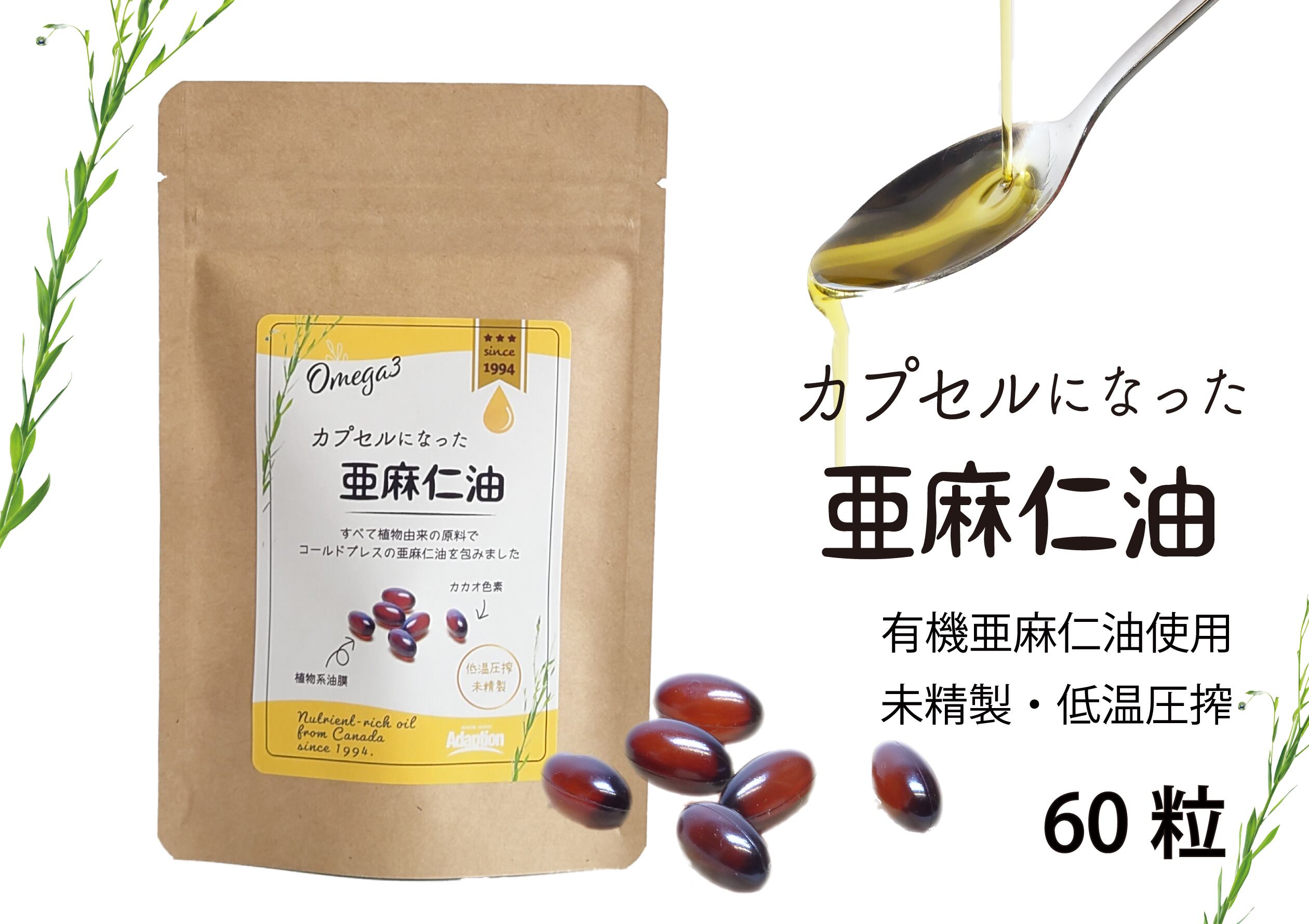 【60粒×1袋】カプセルになった亜麻仁油|コールドプレス・有機・植物由来 オメガ3サプリメント