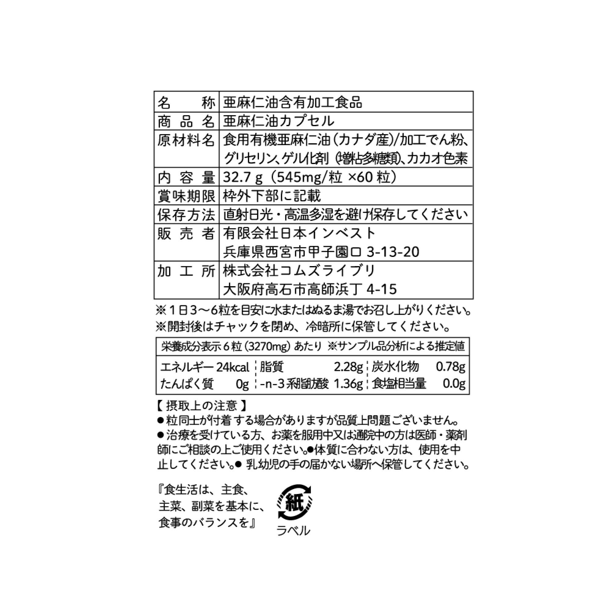 商 品 名:亜麻仁油カプセル