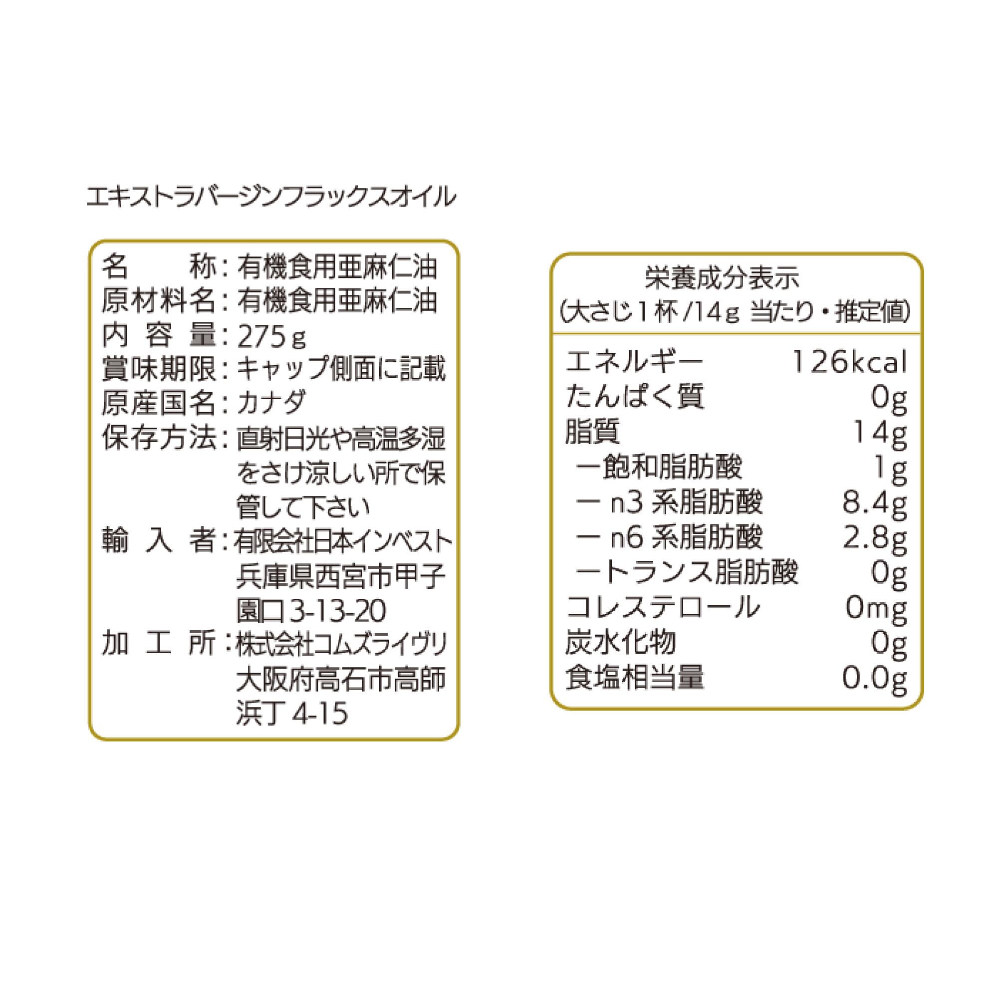 原材料:有機食用亜麻仁油(カナダ製造)